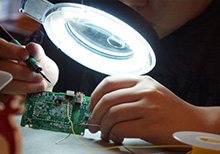 Сотрудник сервисного центра исполняет работу: заменяет проблемную деталь исправной оригинальной комплектующей