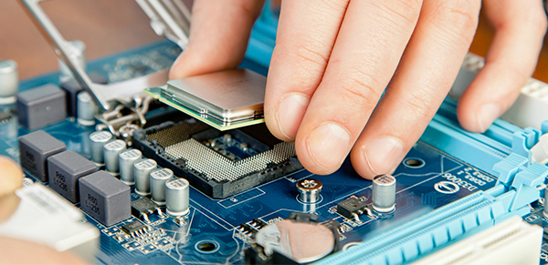 Сотрудник сервисного центра исполняет работу: заменяет проблемную деталь исправной оригинальной комплектующей